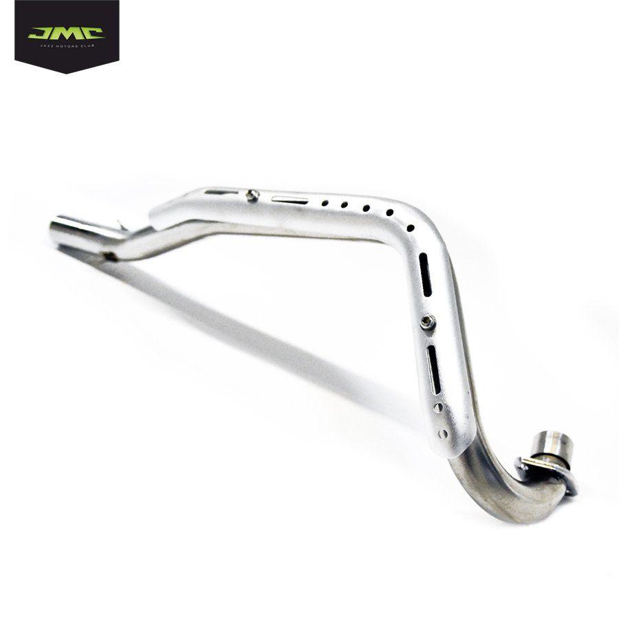 Патрубок глушителя JMC 160 PRO 2016. Размеры крепления к цилиндру: внешний диаметр – 39 мм, внутренний – 2,8 мм; размеры крепления к выхлопной трубе: внешний диаметр – 39 мм, внутренний – 2,8 мм. Расстояние между концами патрубка – 54 см. Вес 1,2 кг. Гарантия качества запчастей. Быстрая доставка. Доставим бесплатно заказы от 5000 р.по РФ.